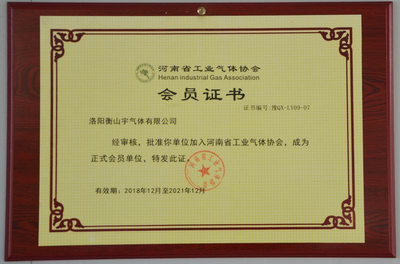 河南省工業(yè)氣體協(xié)會(huì)會(huì)員證書